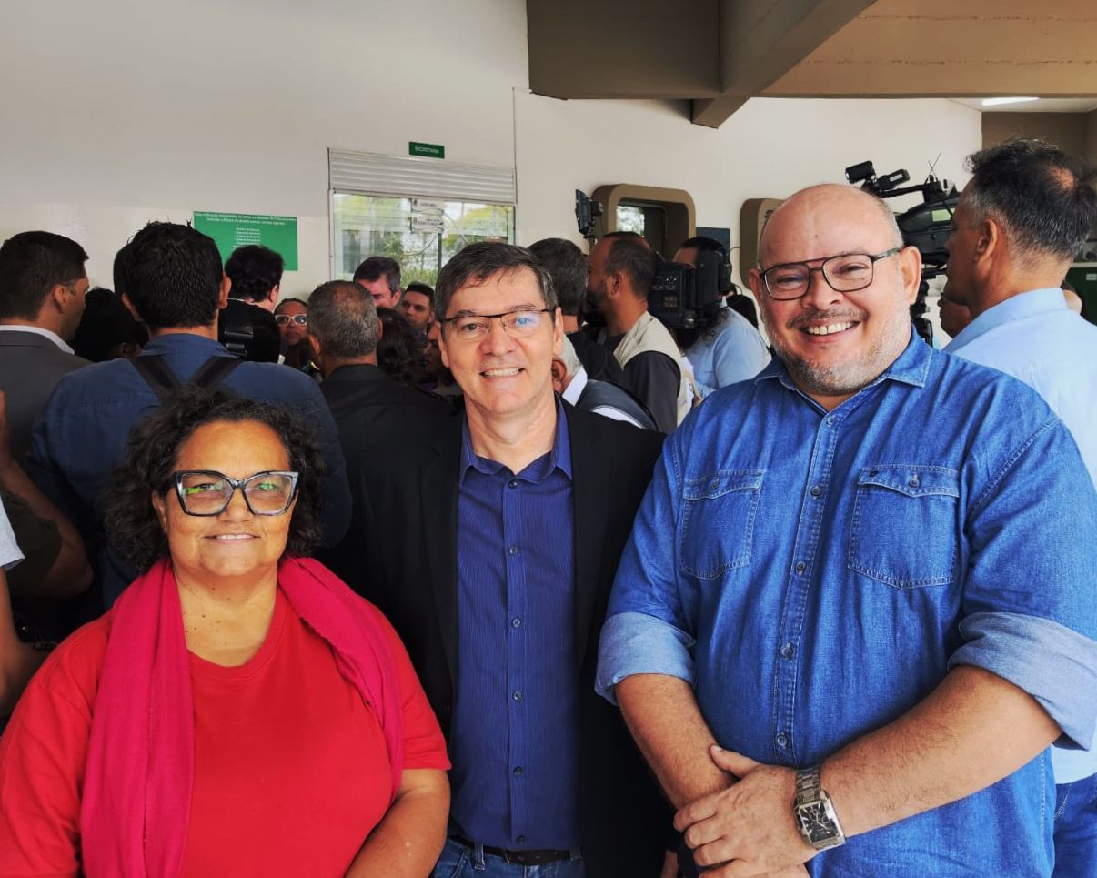 A seção sindical do Andes-SN, Associação dos Docentes da Universidade Federal de Mato Grosso do Sul (Adufms) esteve presente, na manhã desta quarta-feira (1º de outubro), na agenda do ministro da Educação, Camilo Santana, em Campo Grande. A entidade foi representada pelo presidente, José Roberto Rodrigues de Oliveira, pelo vice-presidente, Marco Aurélio Stefanes, e pela ex-presidenta, Mariuza Guimarães, durante a visita do ministro à Escola Estadual Lúcia Martins Coelho.